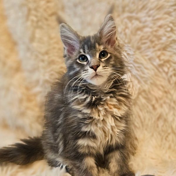 This sweet girl is a mini Cinder! She is so beautiful! She is very sweet & very playful. She has really been coming out of her shell & showing her true colors! Not to mention her colors are starting to come out more around her face. She is so beautiful & fluffy!